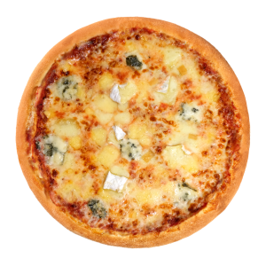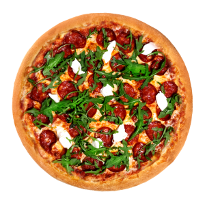 Blat Pizza – 200g (făină albă (conține gluten) – 121.21g, apă – 71.97ml, sare, ulei de măsline, drojdie), bacon – 150g, mozzarella (conține lapte)- 160g, gorgonzola (conține lapte) – 70g, porumb – 70g, sos roșii – 50ml (roșii pasate – 39.36g, apă, ulei de măsline extravirgin, zahăr, busuioc, oregano, sare, zahăr).