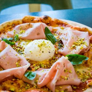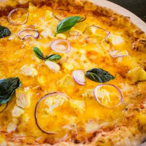 Blat pizza – 200g (făină albă (conține gluten) – 121.21g, apă – 71.97ml, sare, ulei de măsline, drojdie), mozzarella (conține lapte) – 150g, ciuperci champignon – 150g, șuncă presată – 150g, sos roșii – 50ml (roșii pasate – 39.36g, apă, ulei de măsline extravirgin, zahăr, busuioc, oregano, sare, zahăr).